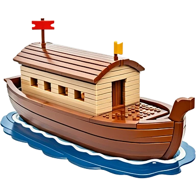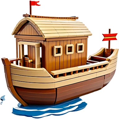 Huge empty wooden Lego Noah's ark boat on water, wide and spacious, no occupants, realistic details emoji