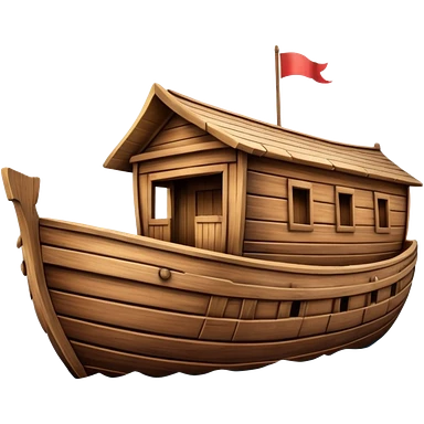 Huge empty wooden Noah's ark boat on water, wide and spacious, no occupants, realistic details emoji