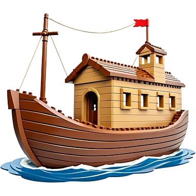 Huge empty wooden Lego Noah's ark ship on water, wide and spacious, no occupants, realistic details emoji