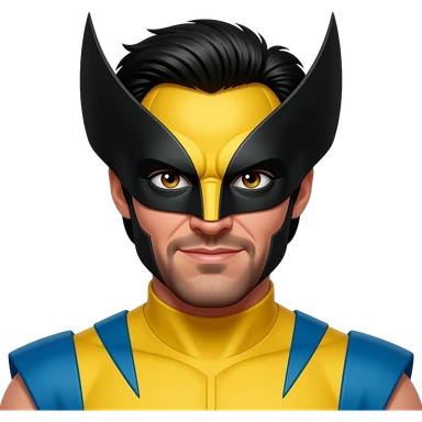 Hugh Jackman as Wolverine with hazel eyes, black hair, yellow and blue outfit emoji