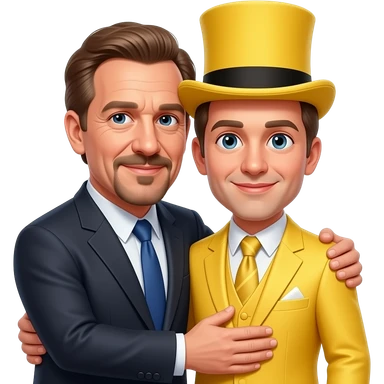 jeffrey epstien who also has a 5 oclock shadow hugging a stage magician in a yellow suit who is also wearing a yellow top hat emoji