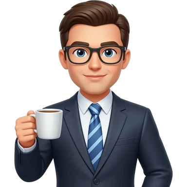 Human with a suit on and coffee emoji