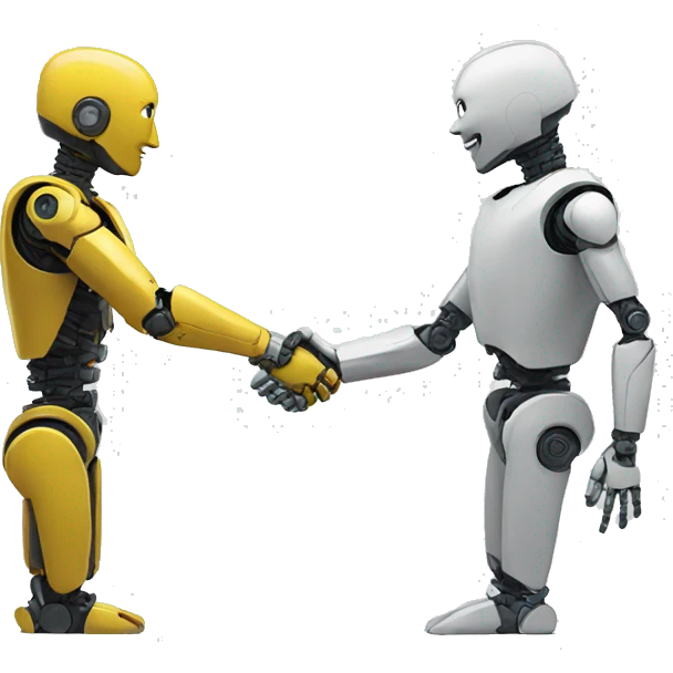 (Image of a handshake between a human and a humanoid robot, symbolizing the collaboration between human and AI emoji