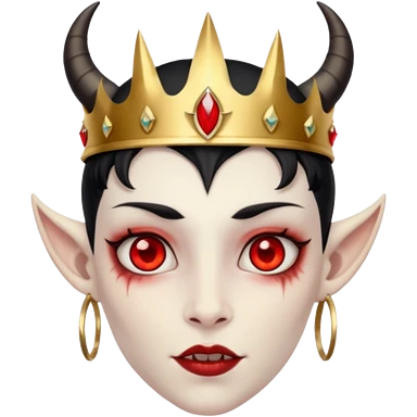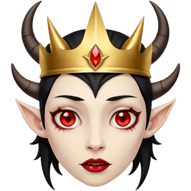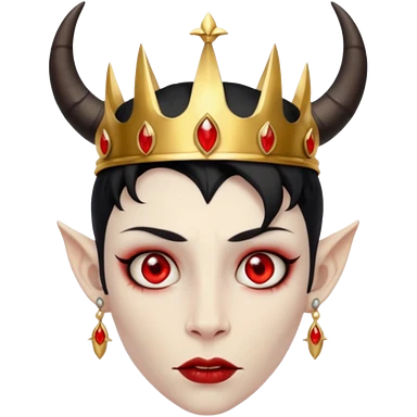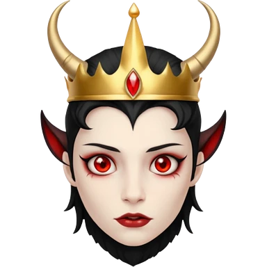 human demon hybrid with red eyes black horns and simple gold grown emoji
