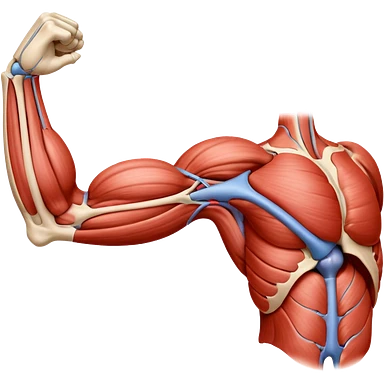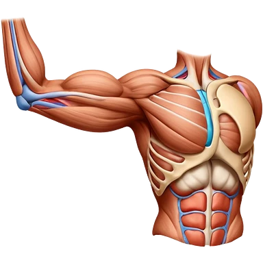 minimalistic human body silhouette with muscle groups outlined in color, flat Apple iOS icon style emoji