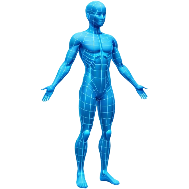 Human body silhouette with digital 3D scanning grid lines covering it, futuristic body scan emoji | AI Emoji Generator