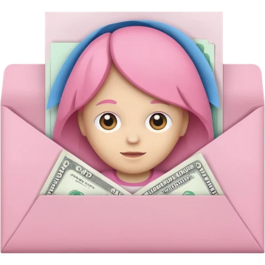 An Asian woman with white skin holds an Asian baby and a small Asian child in her arms, in her other hand a small bottle of milk, above this woman the word "ANA" in a semicircle like a rainbow, but pink emoji