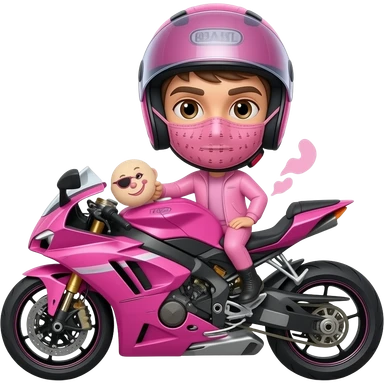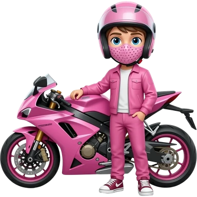 sexy boy with a motorcycle helmet in pink clothes and a pink motorcycle wearing a pink mask emoji