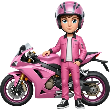 sexy boy with a motorcycle helmet in pink clothes and a pink motorcycle emoji