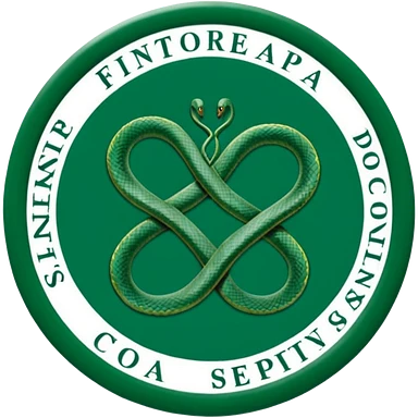 Símbolo da Fisioterapia formado por um círculo verde, duas serpentes, e um raio central. No conjunto, o símbolo representa o uso do movimento e do conhecimento científico para promover a reabilitação e o bem-estar do corpo humano. emoji