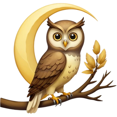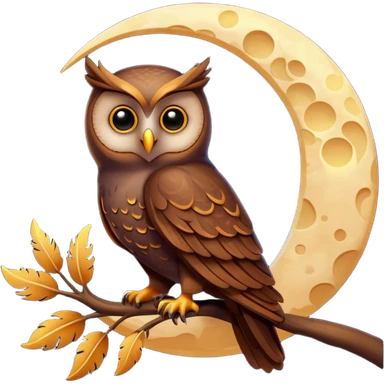 iridescent crescent moon with an owl sitting in the middle of it emoji