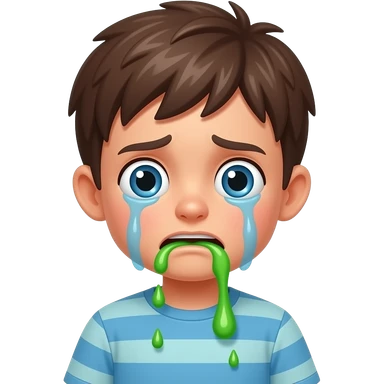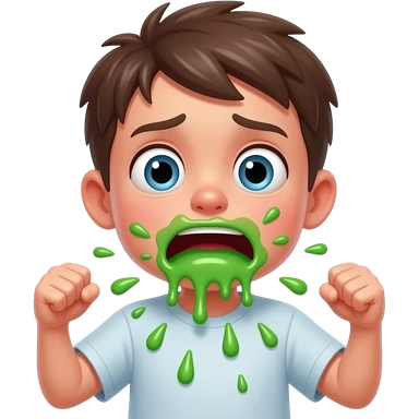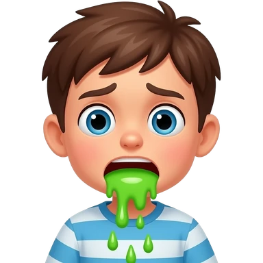 sick boy puking green vomit sad/scared puking alot emoji