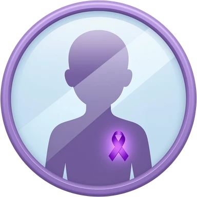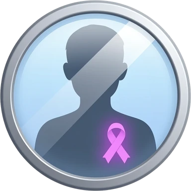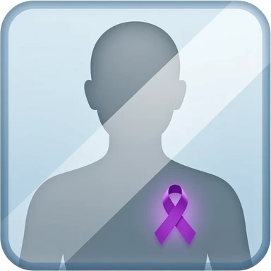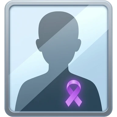 iOS-style emoji: a mirror reflecting a human silhouette wearing a glowing purple ribbon on the chest, symbolizing fibromyalgia awareness, soft gradients, cute and subtle, transparent background emoji