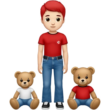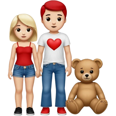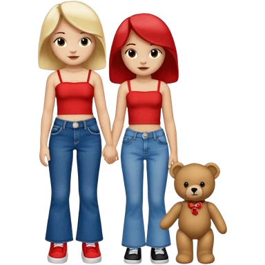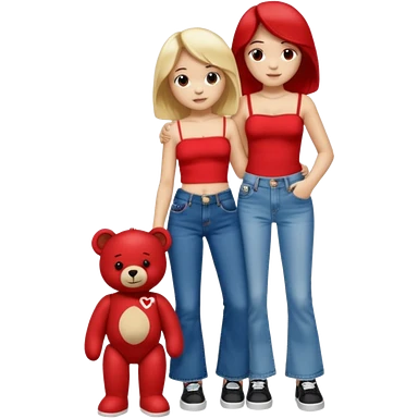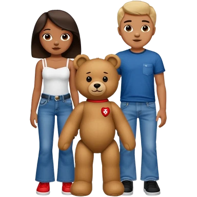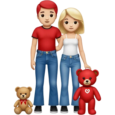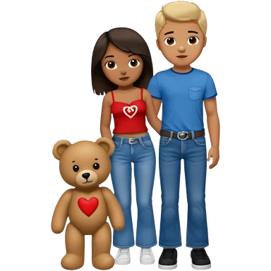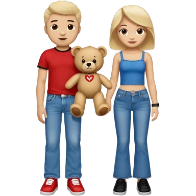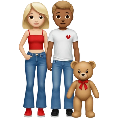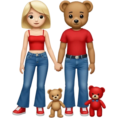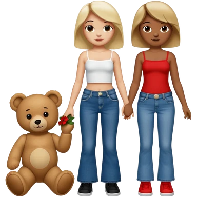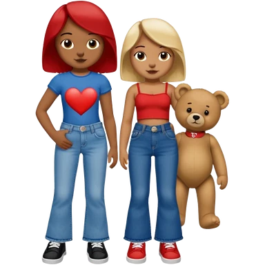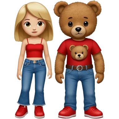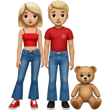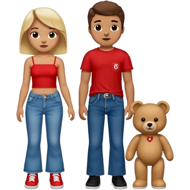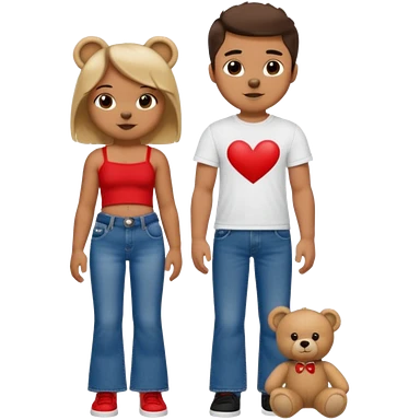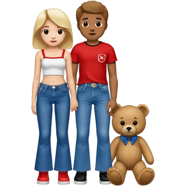 A boy and a girl teddy bear for the boy bear put on true religion shirt and jeans with black shoes and for the girl put flare jeans and a red tube top and white shoes just bears not the humans emoji