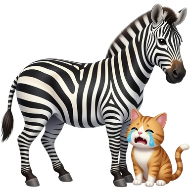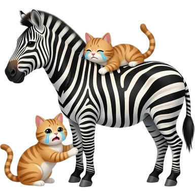 mad zebra male is doing back hug with cat female, cat female is crying and zebra male is mad. emoji
