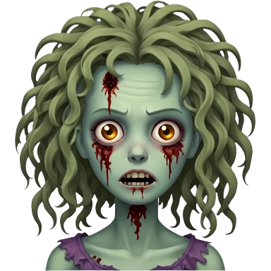 uma zumbi com cabelos cacheados marrom escuro emoji