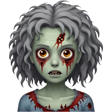 garota zumbi com cabelo preto ondulado longo blusa branca emoji