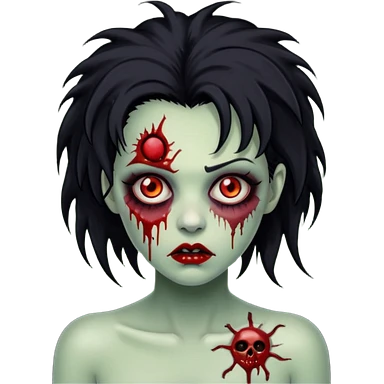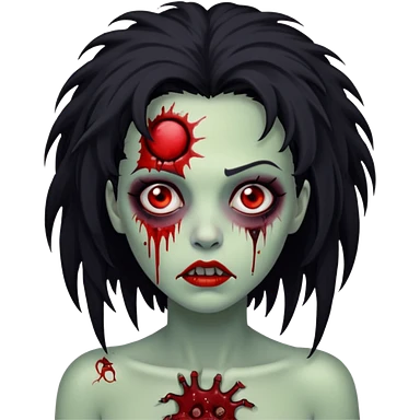 Uma zumbi de pele verde cabelo chanel todo preto bagunçado emoji