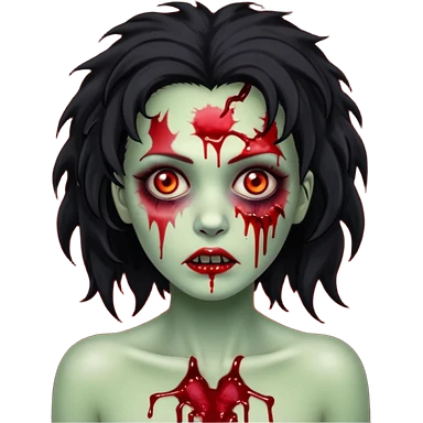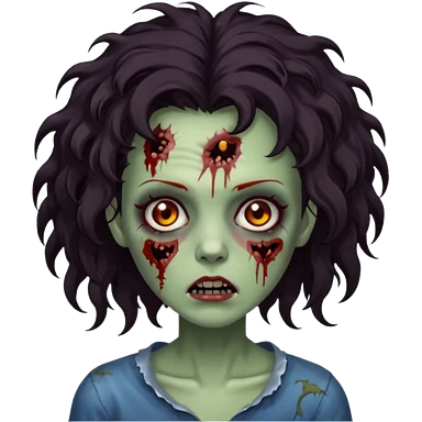 garota zumbi com cabelo preto ondulado longo blusa BRANCA emoji