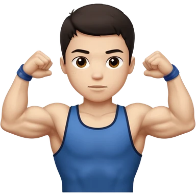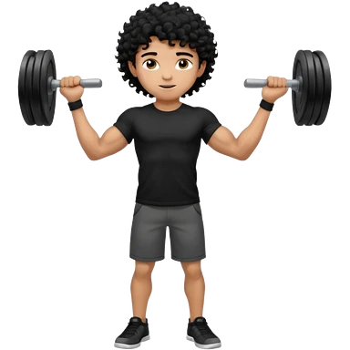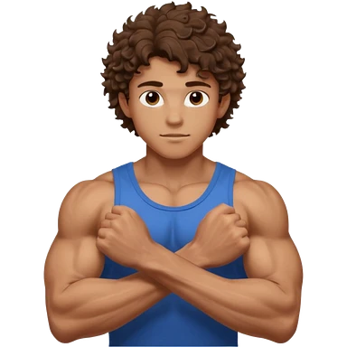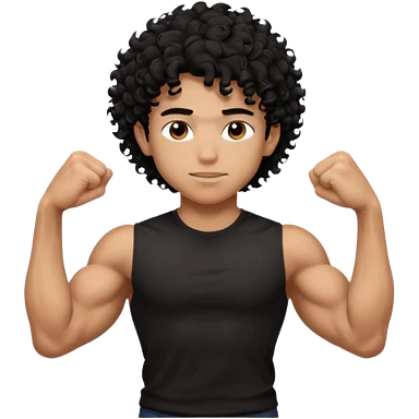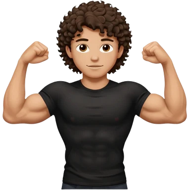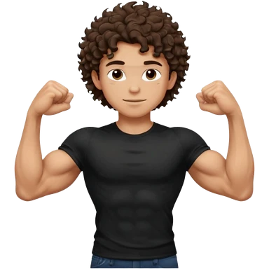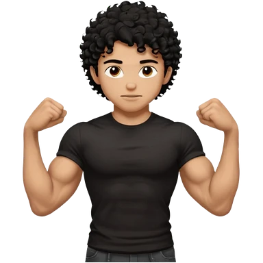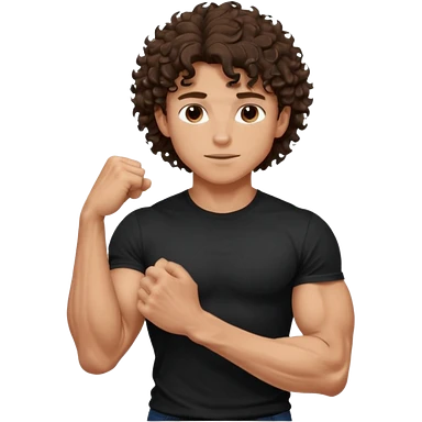 muscular teen boy with veiny hands arms and biceps. has messy black curly hair with dark-tan skintone with black tshirt emoji