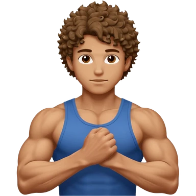 muscular teen boy with veiny hands arms and biceps. has messy curly hair with tan skintone emoji