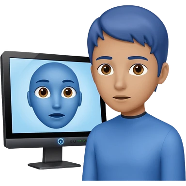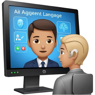 human is using some complicated system, in front of the monitor, asking someting to the monitor by natural language the monitor, ai agent is inside, answering in also natural langague emoji
