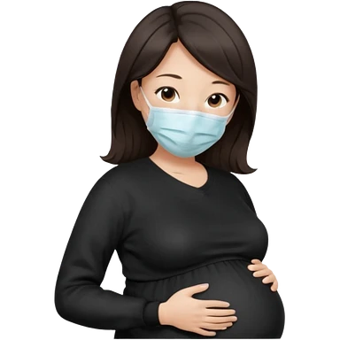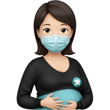 a pregrant chinese lady with dark brown hair? Hair lengt above shoulder, wearing medical face mask, i wanna see the pregnant belly with black sweater emoji