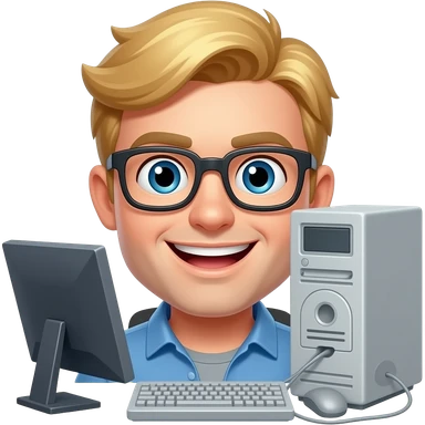 hungry software developer, somehow happy, blonde, with a pc emoji