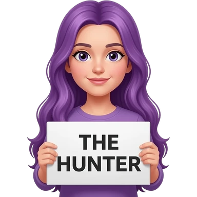 girl with long purple hair with a THE HUNTER sign emoji