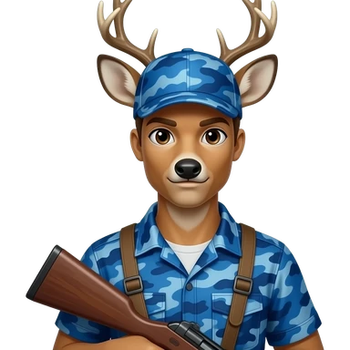 hunter with blue camo and and hat weapon emoji | AI Emoji Generator
