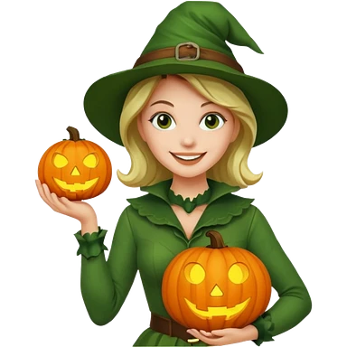 Woman Hunter With Jack o Lantern, wearing green costume emoji