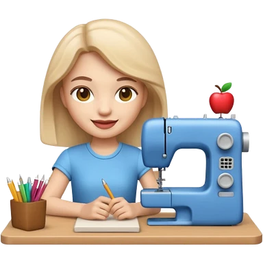 A 3D emoji with a apple Memoji style that the depicts a person who is learning to become a fashion designer as her highchool extended profile. She is young in a highschool age. She has items that are familiar with this job in the field. She is smiling normally emoji