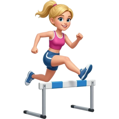 blonde girl running over hurdle emoji