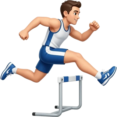 An icon of an white-skined athlete soaring over a hurdle, mid-jump, with a powerful form. The background features a vibrant stadium, with the track and hurdles in sharp focus, and a cheering crowd along the stands. The motion of the jump emphasizes speed and agility. Transparent background. emoji