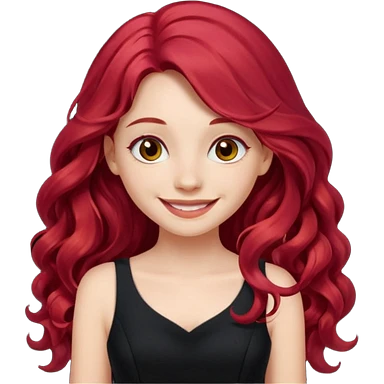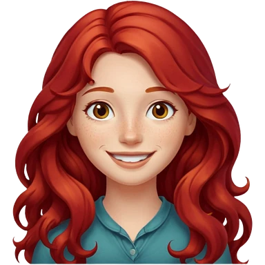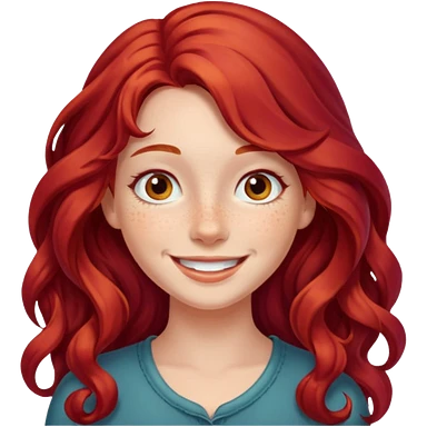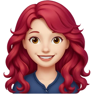 Girl with Red Hair – long wavy crimson hair, smiling face. emoji