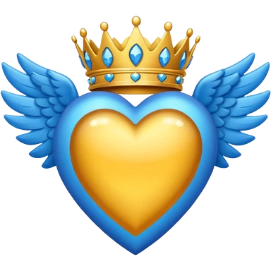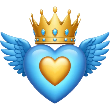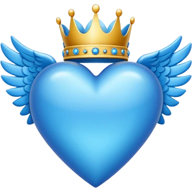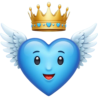Un emoji de corazón completamente azul con alas y una corona emoji