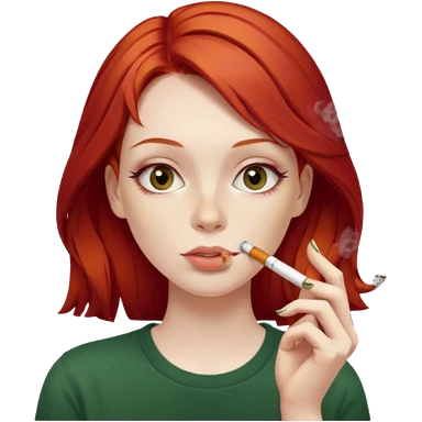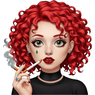 bright red curly hair alt girl with makeup and piercings smoking a joint emoji