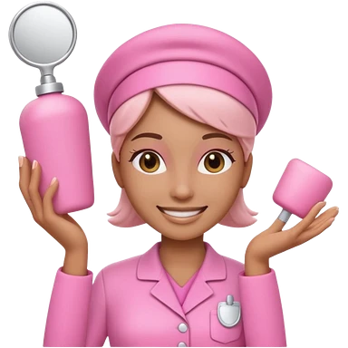 3D emoji of an esthetician wearing a pink uniform and smiling in a clean beauty studio emoji