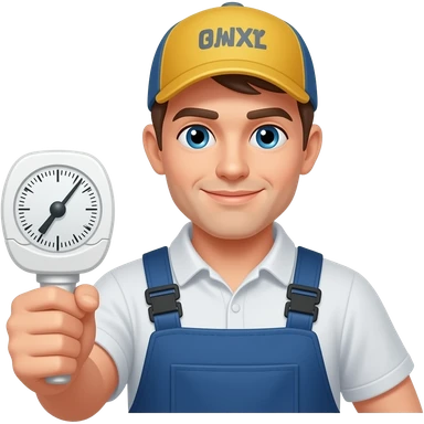 HVAC installer with thermostat with PULTE on his hat emoji | AI Emoji Generator