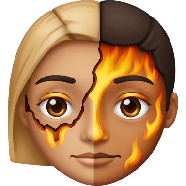 hybrid emoji with the top half as a laughing emoji and the bottom half as a red triangle, seamlessly merged at the midpoint