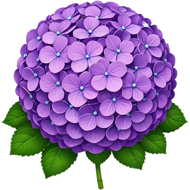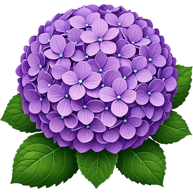 Natural hydrangea flower with realistic cluster of tiny individual blooms, soft color gradients from center to edge, slightly irregular rounded shape, and detailed green leaves emoji