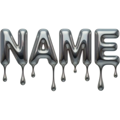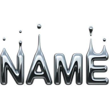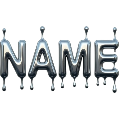 A hyper-realistic text 'NAME' made of flowing, high-polish liquid chrome. Distorted reflections of a dark urban cityscape, sharp contrast, 8k resolution, 'Terminator' style aesthetic, clean and aggressive emoji