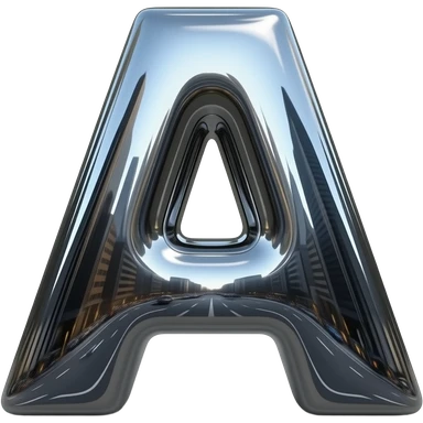 A hyper-realistic letter 'A' made of flowing, high-polish liquid chrome. Distorted reflections of a dark urban cityscape, sharp contrast, 8k resolution, 'Terminator' style aesthetic, clean and aggressive emoji