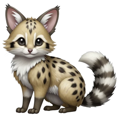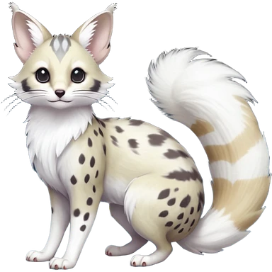 Hyper realistic beautiful elegant pretty precious cute Fakémon-Pokémon-opossum-feline-serval-caracal-chinchilla-Furret-Minccino-hybrid-creature with a big fluffy bushy tail (full body) emoji
