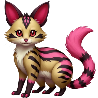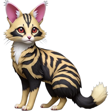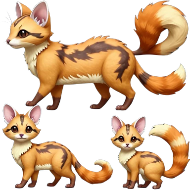 Hyper realistic furry fiery flammable beautiful elegant pretty precious cute Fakémon-Pokémon-opossum-feline-serval-caracal-chinchilla-Furret-Minccino-hybrid-creature with a big fluffy bushy tail (full body) emoji