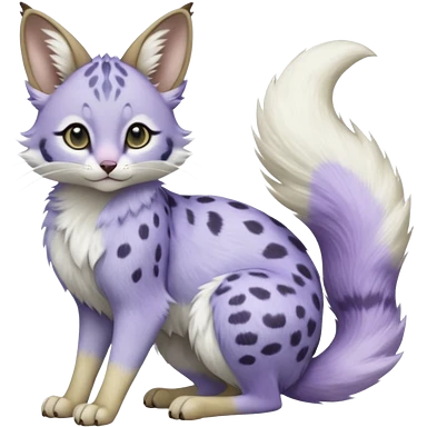 Hyper realistic frost-lavender fur kissed with pale moon-silver dewshine beautiful elegant pretty precious cute Fakémon-Pokémon-opossum-feline-serval-caracal-Ocelot-Minccino-hybrid-creature with a big fluffy bushy tail (full body) emoji