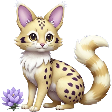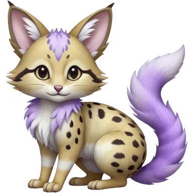 Hyper realistic frost-lavender fur kissed with pale moon-silver dewshine beautiful elegant pretty precious cute Fakémon-Pokémon-opossum-serval-caracal-Ocelot-Minccino-hybrid-creature with a big fluffy bushy tail (full body) emoji