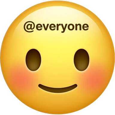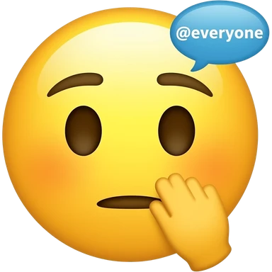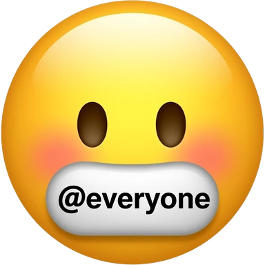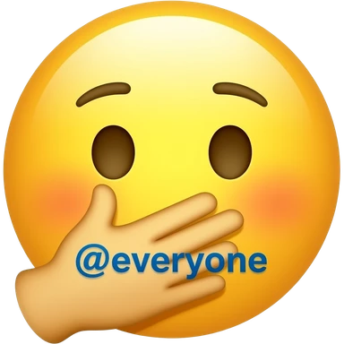 Blushing yellow emoji face covering mouth with hand saying "@everyone" emoji
