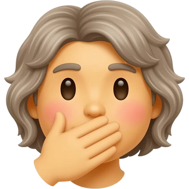 Hyper realistic model with hands covering mouth emoji