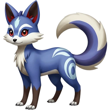 indigo, white, black Hyper-realistic Colorful Skilled Adept Graceful Asian Painted Meloetta-Furret-Lycanroc-Zangoose-fusion-hybrid-creature (full body) emoji